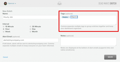Anyone who’s had 10s or 100s of snitches hasn’t had an easy way to organize their dashboards. We’re excited to announce that we released snitch tags today! Tags allow you to easily group snitches together based on projects, clients, environments, whatever! They automatically group by status so you don’t have to scroll through your entire dashboard to find the failures.